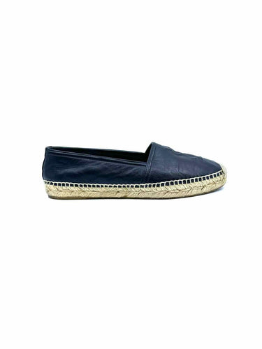 YVES SAINT LAURENT Espadrille Size 7 Black Leather Solid Flats