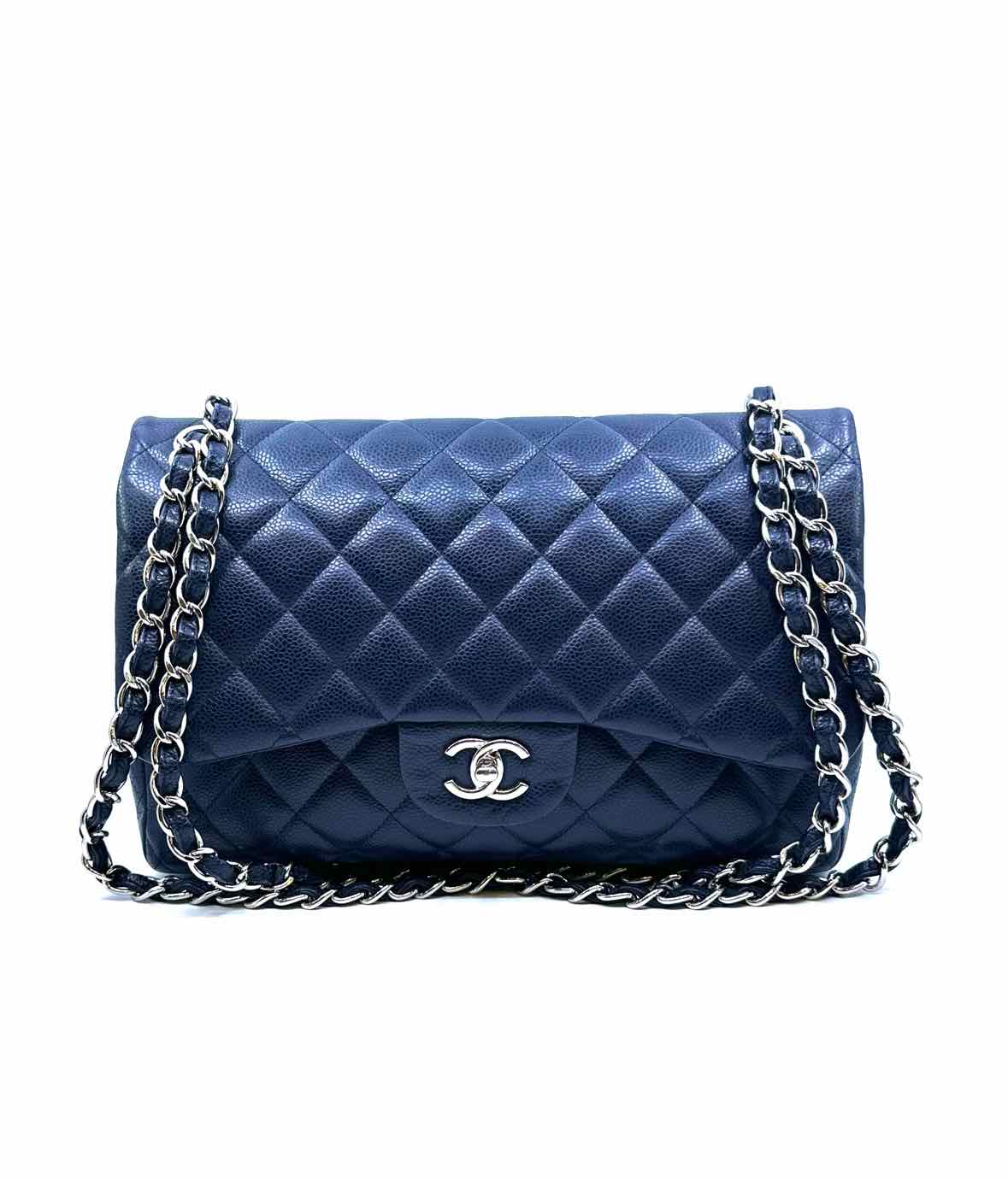CHANEL Navy Leather Quilted caviar Handbag