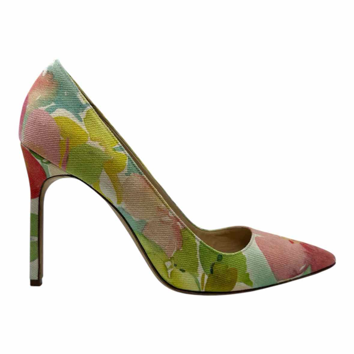 MANOLO BLAHNIK Size 10.5 Green, Pink Canvas Floral Pumps
