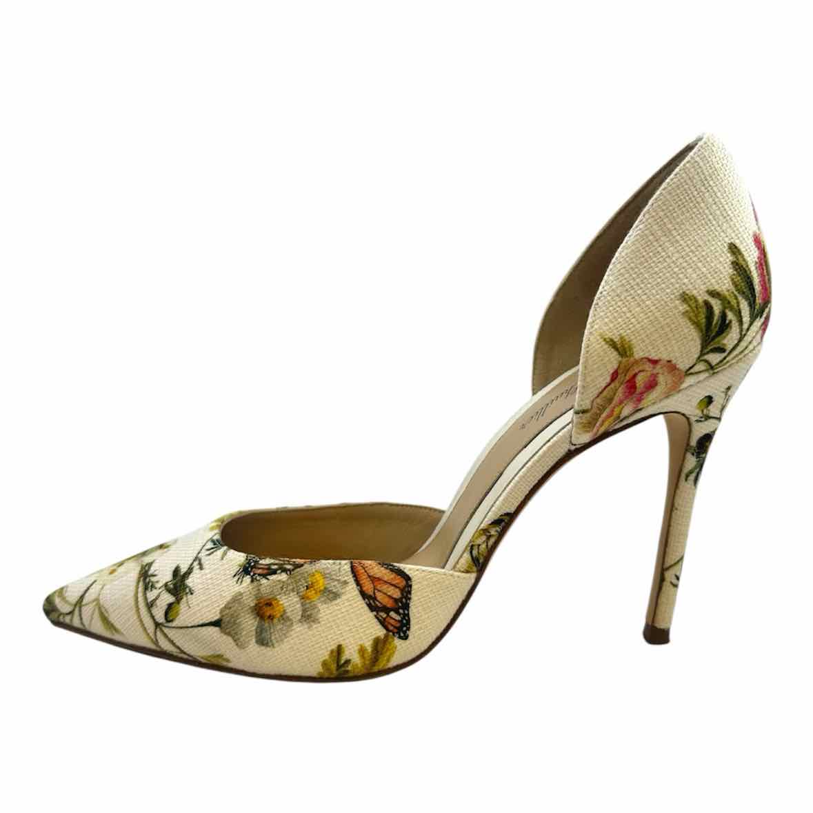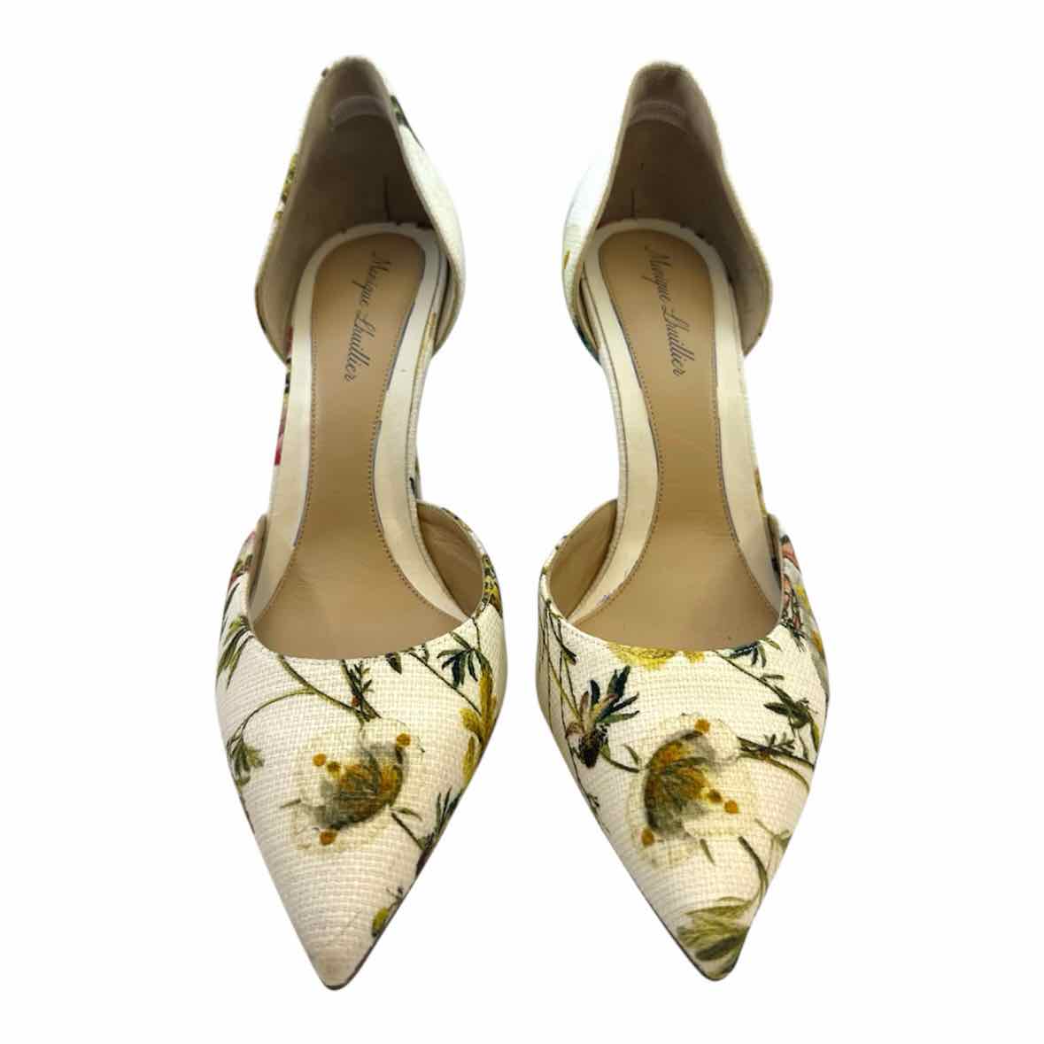 MONIQUE LHUILLIER Shannon Size 9.5 White Canvas Floral Pumps