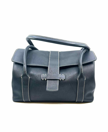 LORO PIANA Black Pebbled Leather Solid Handbag