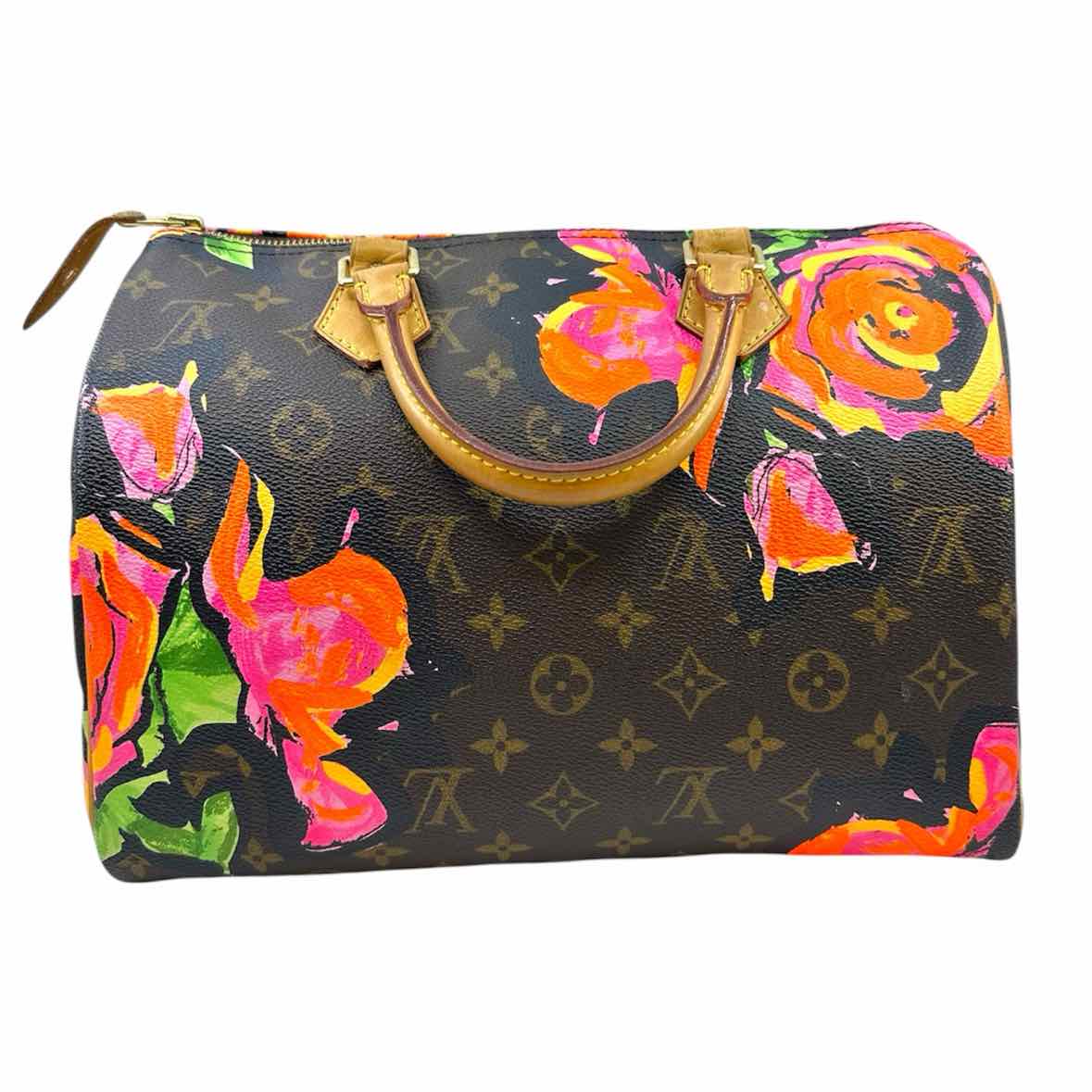 LOUIS VUITTON Speedy 30 Brown Coated canvas Floral Handbag