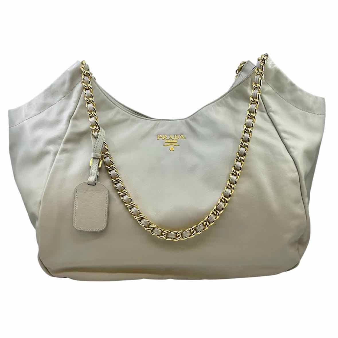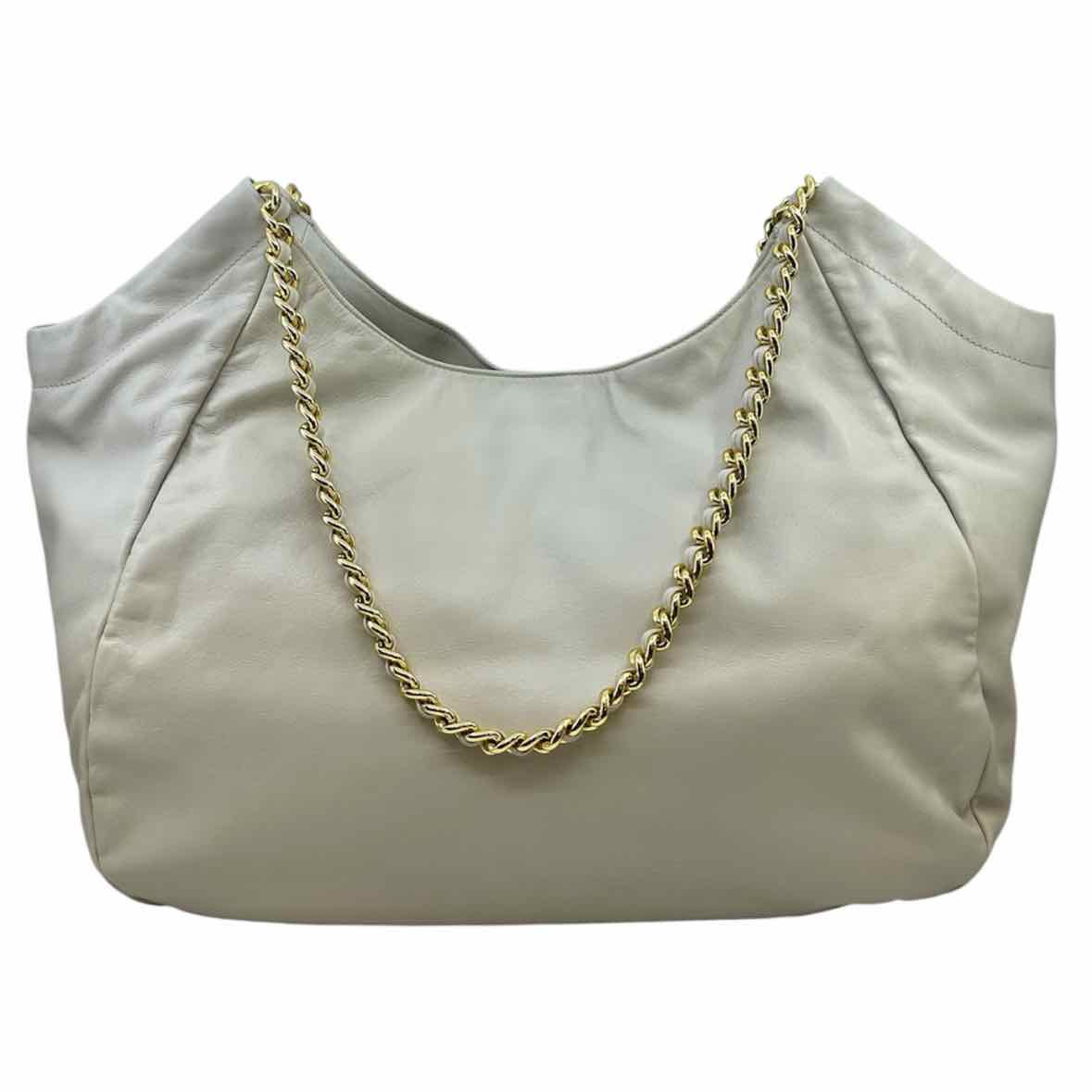 Oversized, large dbl gold/leather chain shoulder straps. Gold hardware.