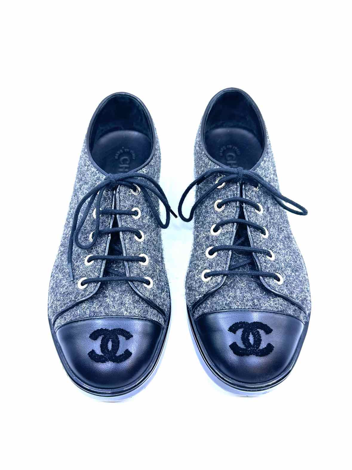 CHANEL Size 7.5 GREY & BLACK Sneakers
