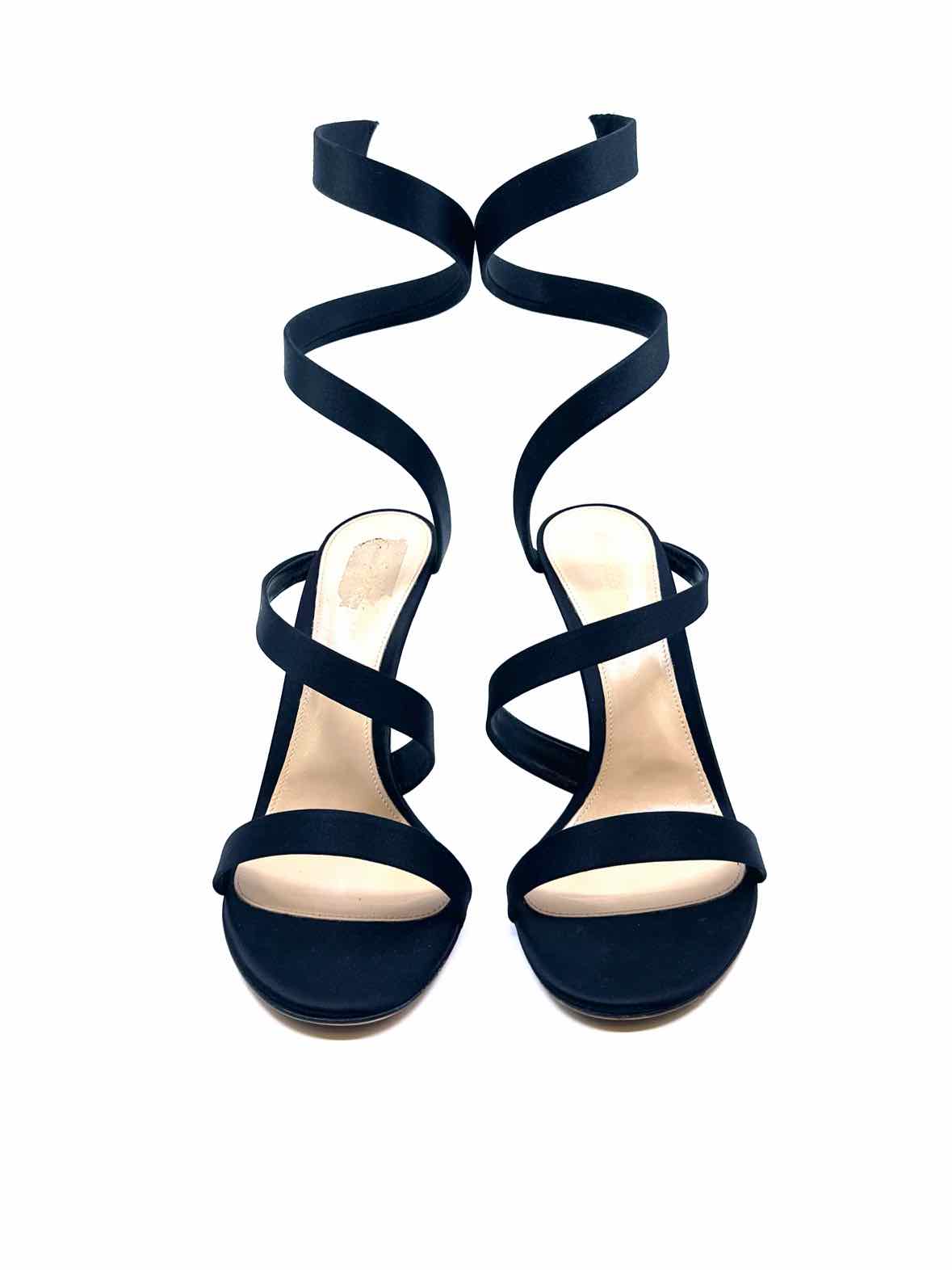 Open toe, toe strap/diagonal mid strap/ankle wrap around. tall heel.
