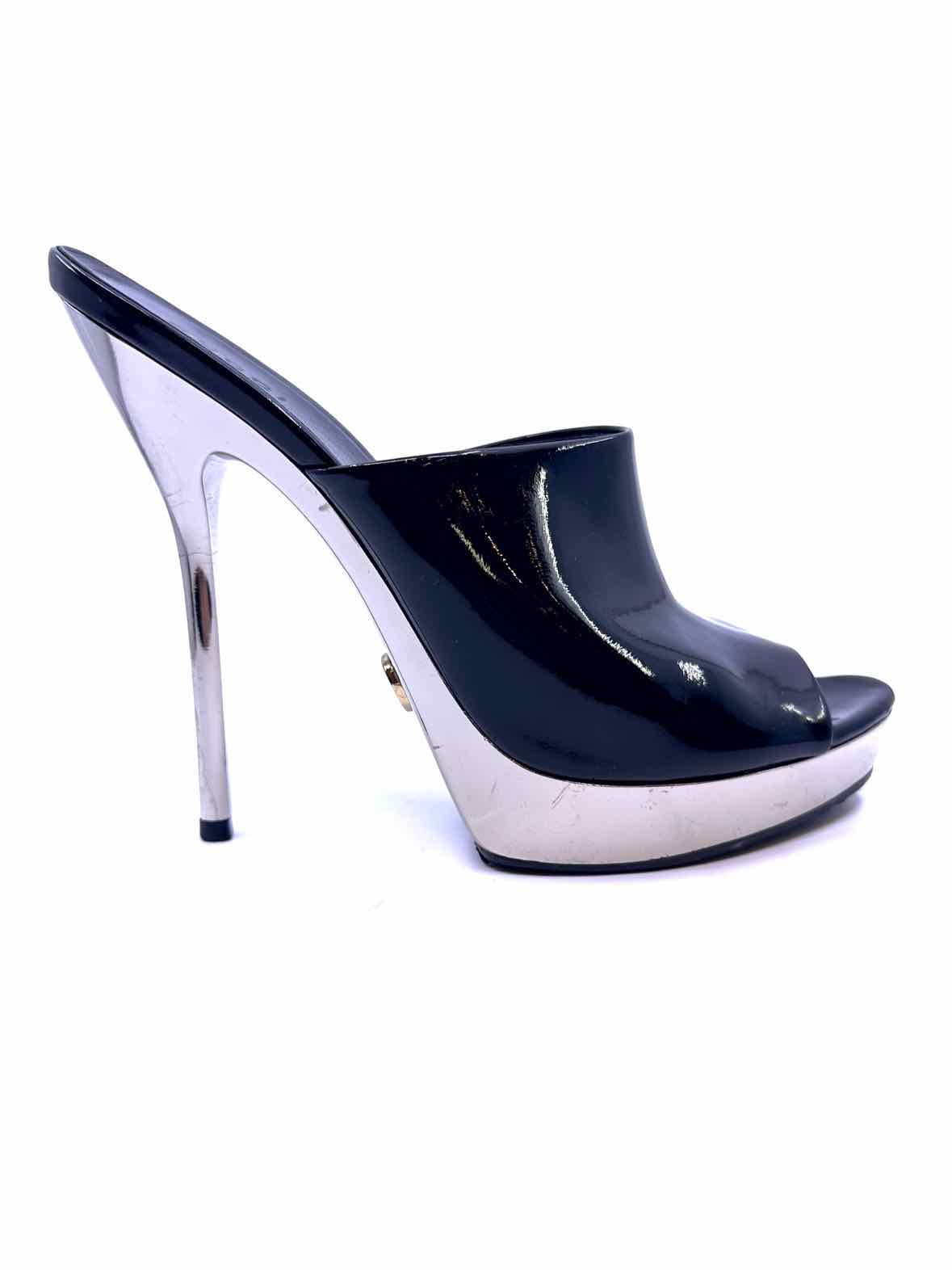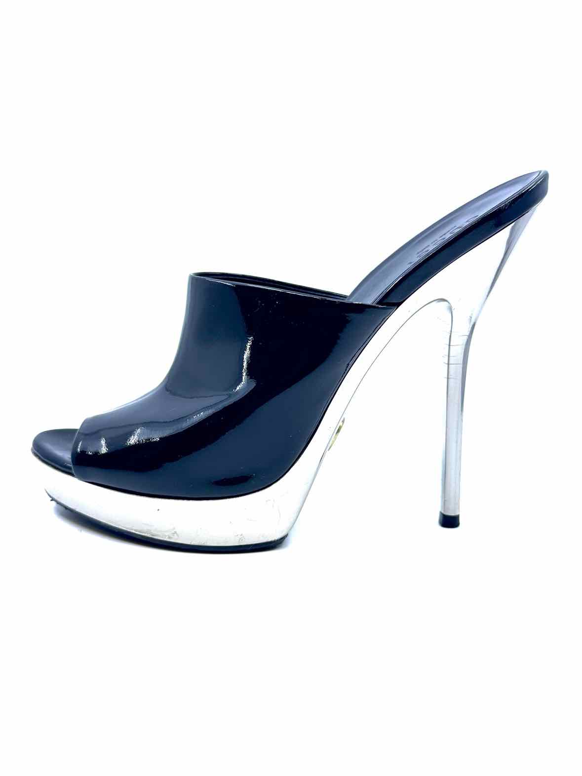 GUCCI Size 6.5 Black Patent Leather Solid Mules