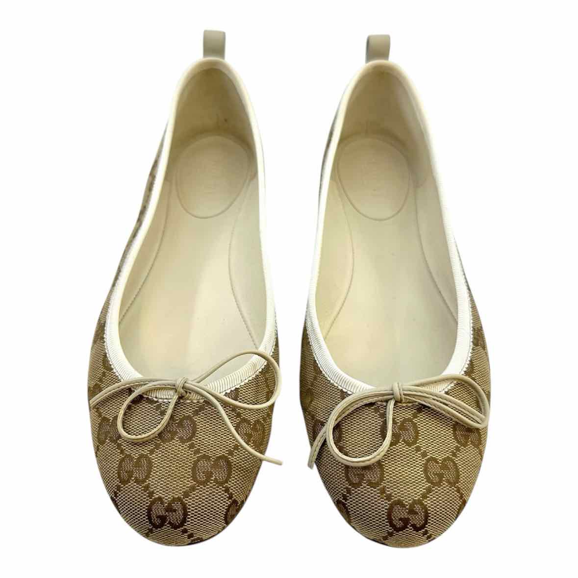 GUCCI Size 9 Brown, White Canvas Monogram Flats