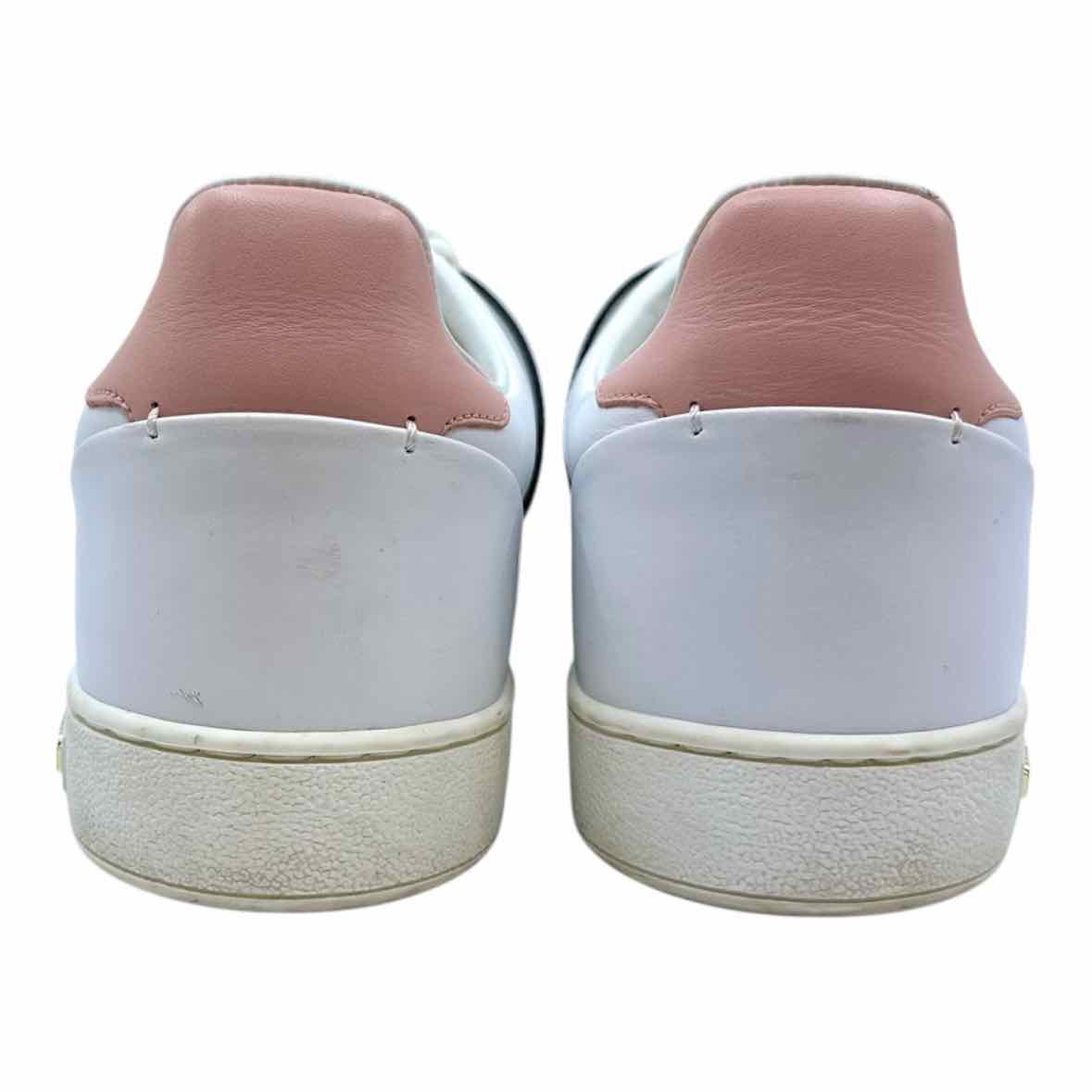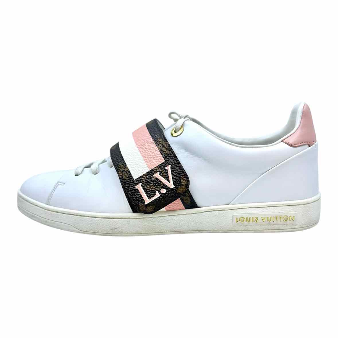[BOX] low top, frontrow, brown monogram strap w/ white/pink stripes & LV, lace