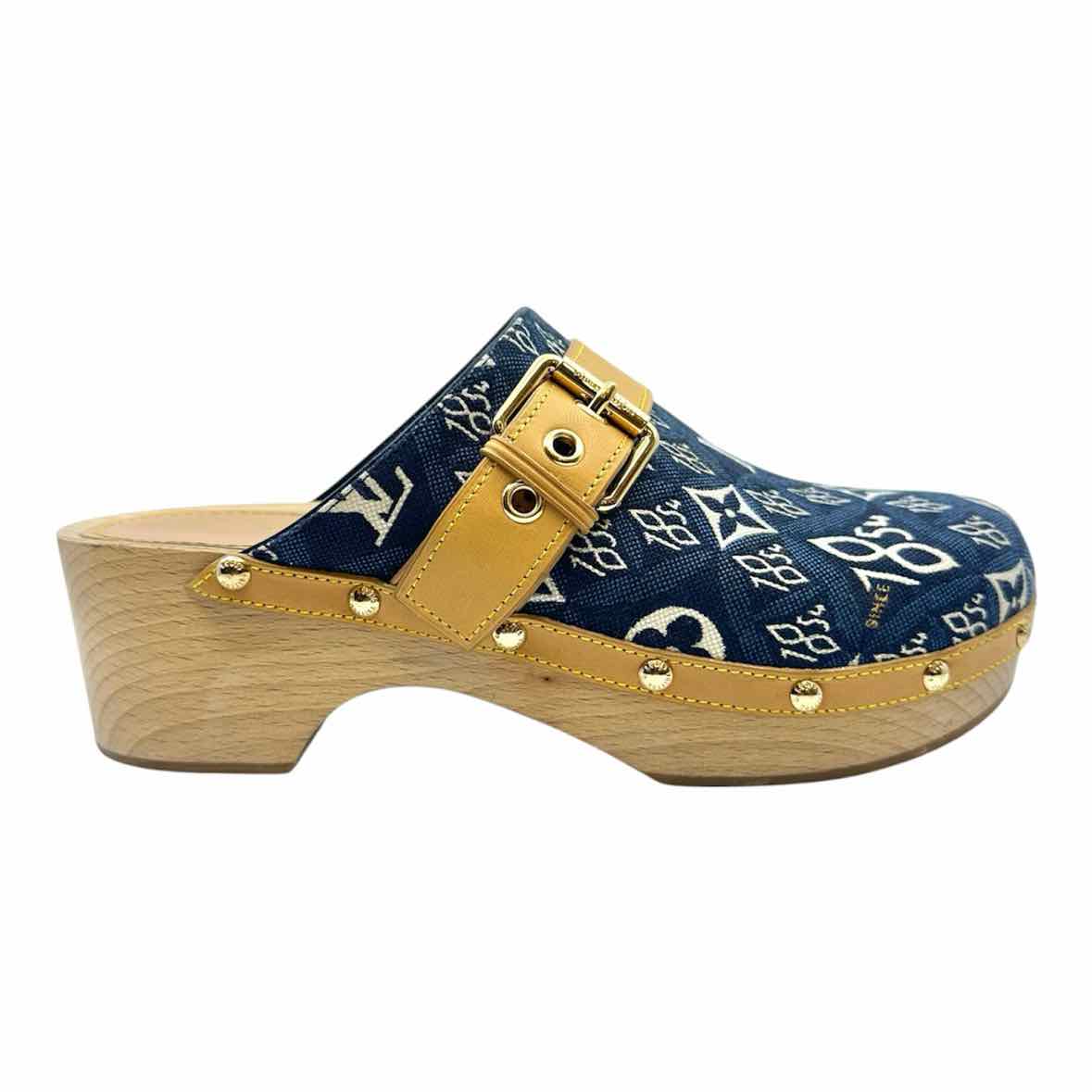 LOUIS VUITTON Size 8 Blue, white Canvas Monogram Clogs