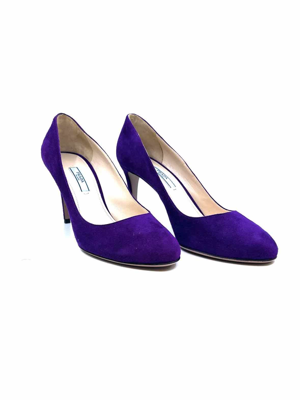 • Load image into Gallery viewer, PRADA Size 8.5 Purple Suede Pumps