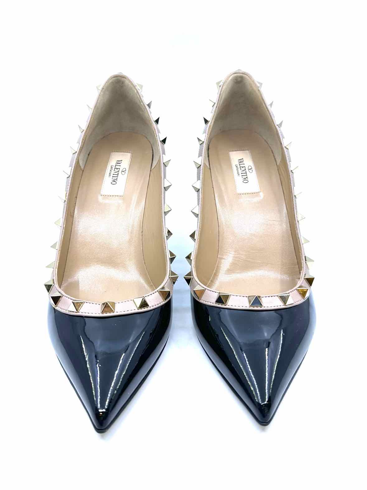 VALENTINO Size 10 Black & Beige Patent Leather Pumps