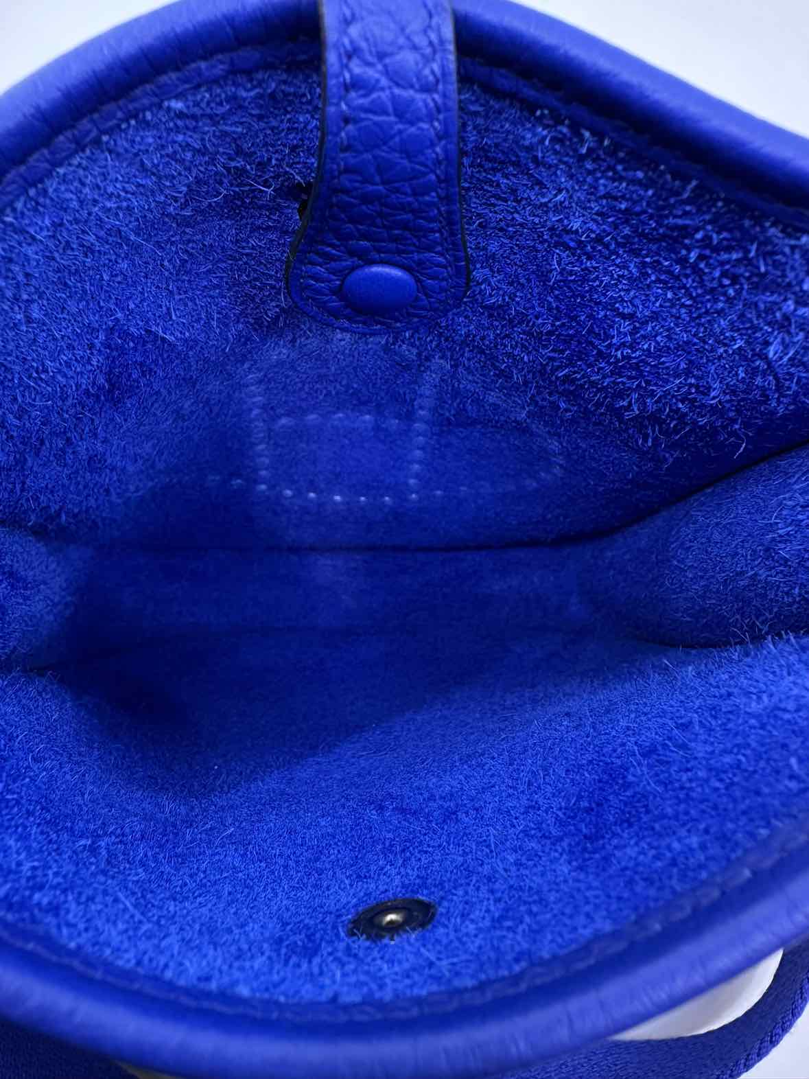 HERMES Evelyne 16 Electric Blue Pebbled Leather Solid Handbag
